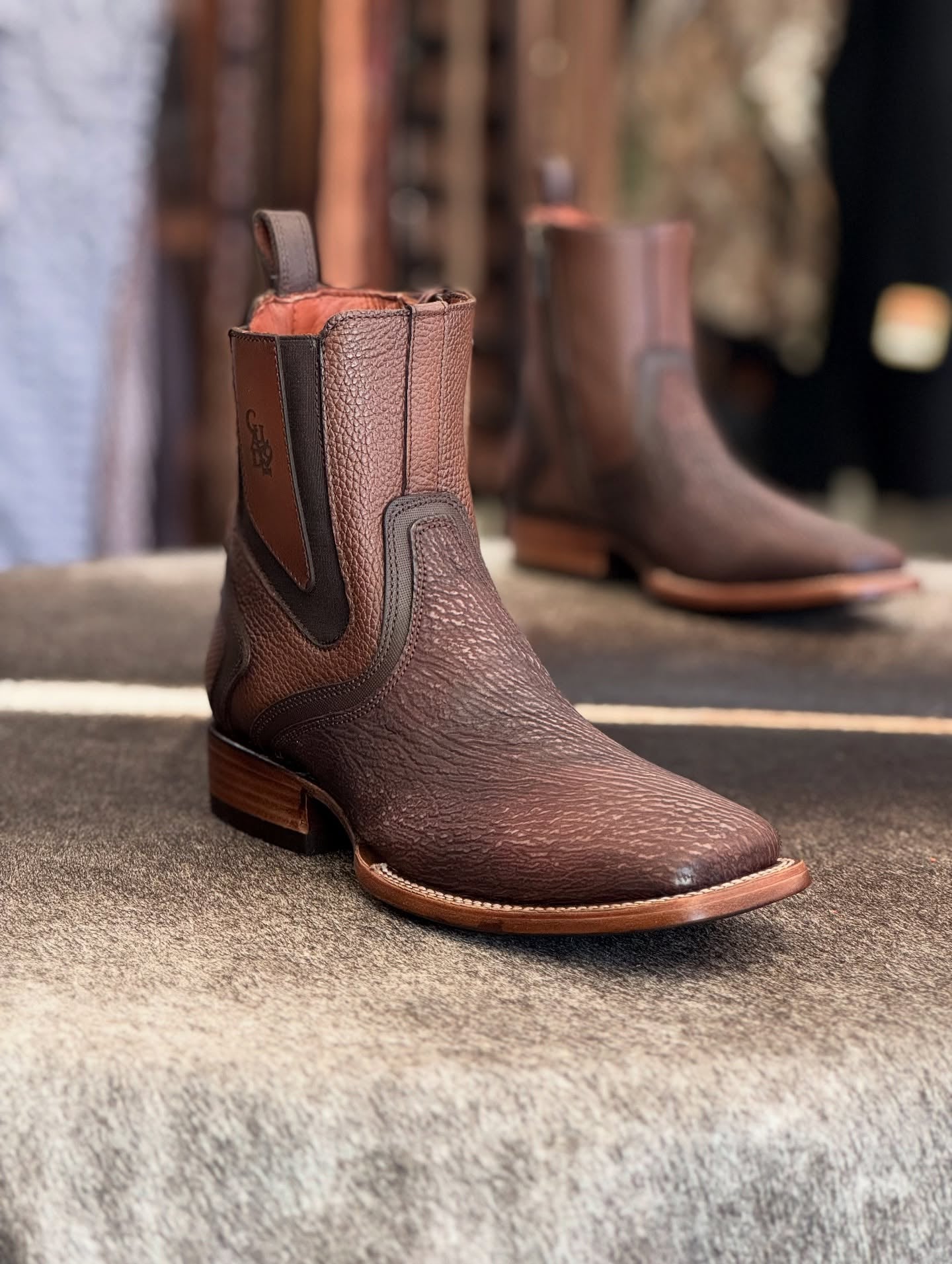 Vintage Cowhide Textured Western Ankle Boots